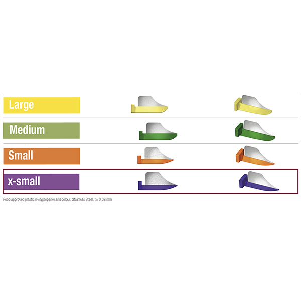 Plastkiler med montert proxitector. Brukes under preparasjon for å beskytte nabotannen og tannkjøttet, x-small, lilla.