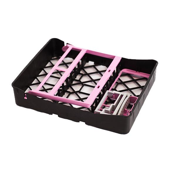 Til Practipal brettsystem, brett i ½ størrelse med plass til 9 instrumenter, grå, med bøyle som holder instrumentene fast, samt borholder med adapter, med plass til 2 stk forlengede bor, 5 stk. HP/RA bor og 8 stk. FG bor, Inkl. 2 stk. klips.