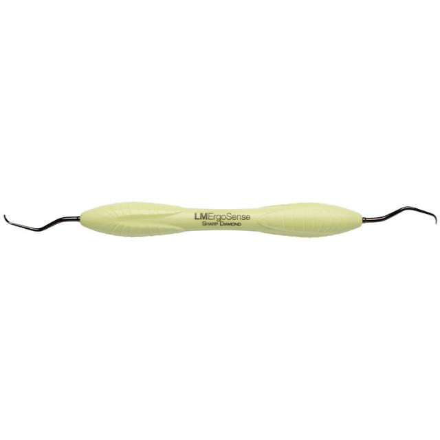 Curette, 207-208 SD ES, Gracey 7/8 SD, til premolar og molar, buccale, mesiale og linguale overflater, SD Sharp Diamond, med coatede ender som ikke skal slipes, grønn, ErgoSense silikonegreb.