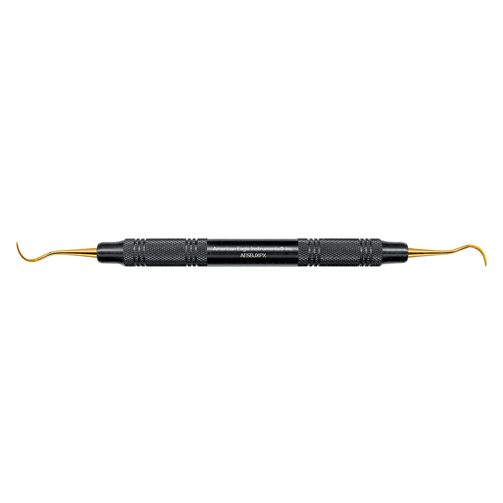 Universalcurette, Blackjack, brukes på alle tannflater i munnen, med svart plasthåndtak og gullfargede ender som IKKE kan slipes.