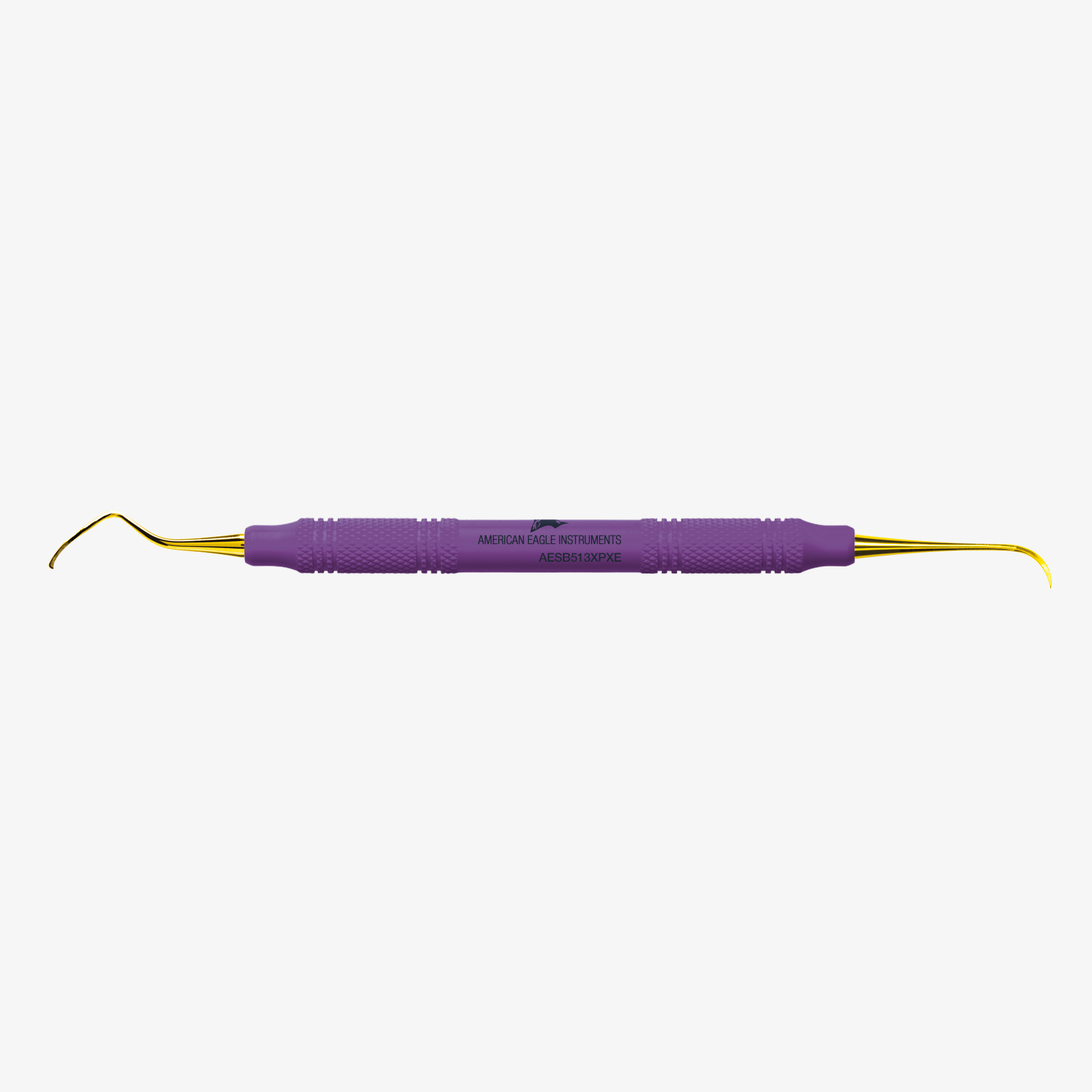 Scaler/hake kombinasjon Boge 513, Scaler gir optimal tilgang i den anteriore regionen, spesielt rundt brackets. Haken til fjerning av lingual tannsten og misfarginger. XP² Technology™, slipefri, ca 50% skarpere, hvilket gir ca 40% lengre holdbarhet på instrumentet enn den forrige XP-teknologien. Eagle Lite™ Resin skaft.