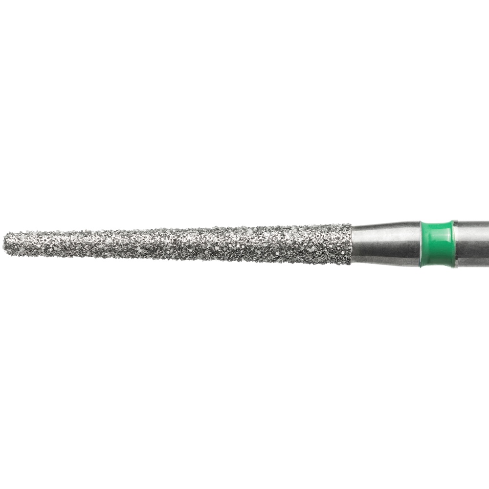 Diamantbor med flere diamantlag i den skærende del, så boret er mere holdbart, effektivt og stabilt. Med "Multilayer Diamond Instrument Guarantee" som er producentens garanti for et bor med en god skære-evne over længere tid. Til præparation, til FG, lang torpedoformet, grov med grøn ring, hovedlængde 11,5 mm, 174/016 C (848L).