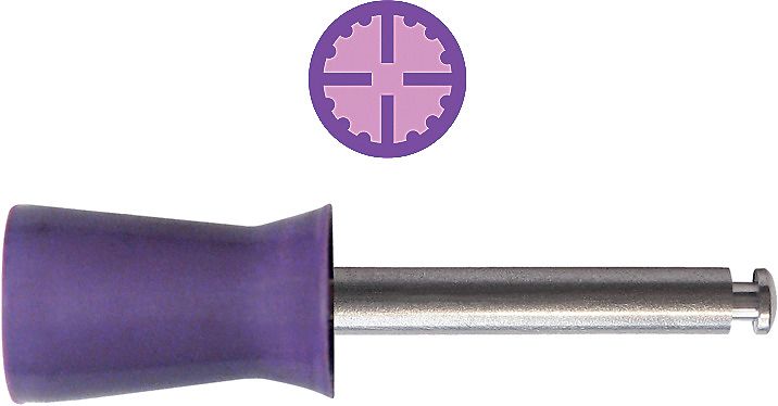 Gummikopper til profylakse, latexfrie, montert for vinkelstykke, PSRA012, lilla med 4 lameller/riller.