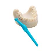 Interdentalbørster med med "tannbørsteskaft" i silikon, vinklet børstehode og plastbelagt tråd. Angle, rød, 0,5 mm tråd, diameter 0,9 mm, sylinderformet. Egner seg for salg til pasienter.