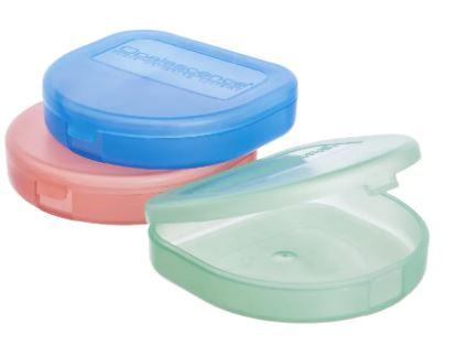 Flate oppbevaringsbokser til blekeskinner, 5,5 x 7 x 1,5 cm (innvendige mål). Assorterte i tre halvtransparente farger: Blå, grønn og melon.
