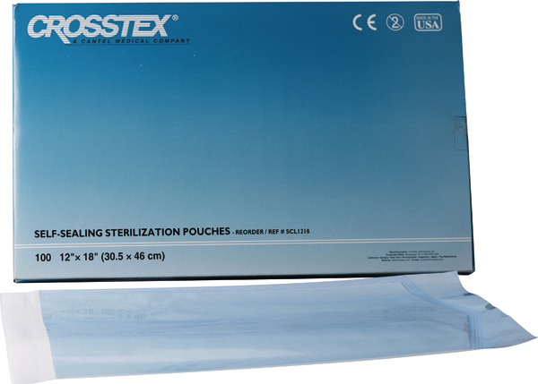 Papir/plast, til autoklavering, dampgjennomtrengelig, bakterietett papir med indikator på den ene siden og plast på den andre, med selvlukk, 30 x 46 cm.